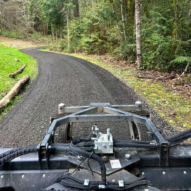 Restore your gravel driveway to smooth, like-new condition with our professional refinishing services. We use a Harley rake attachment on our skid steer to recondition the surface, redistributing existing gravel, breaking up compacted material, and creating a uniform driving surface. This process eliminates minor imperfections, improves drainage, and extends the life of your driveway without the need for complete reconstruction.